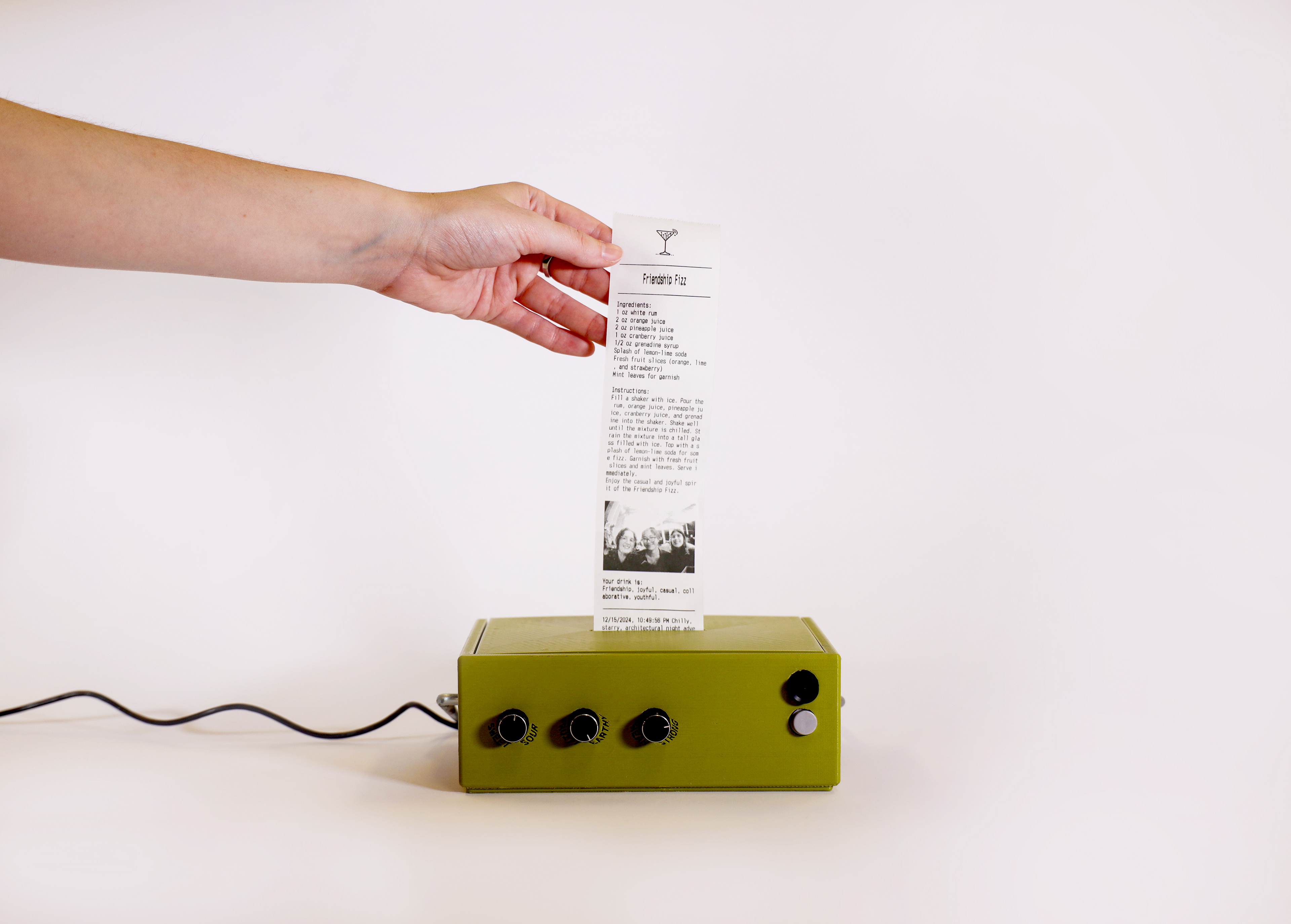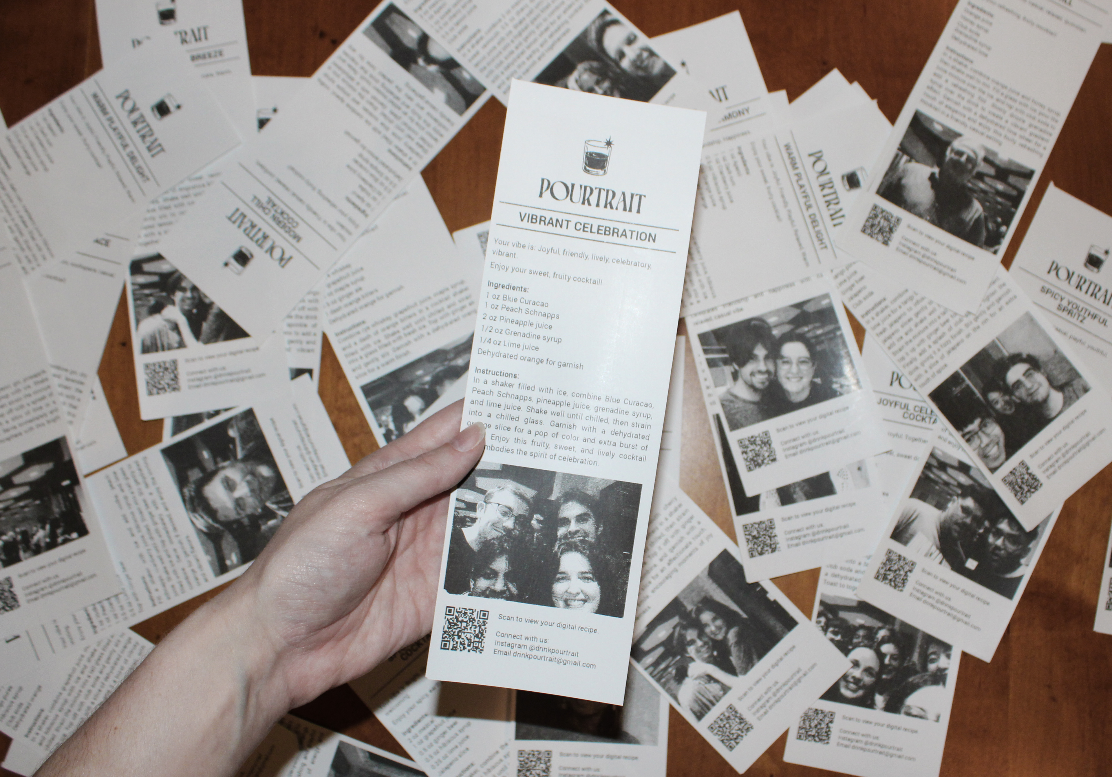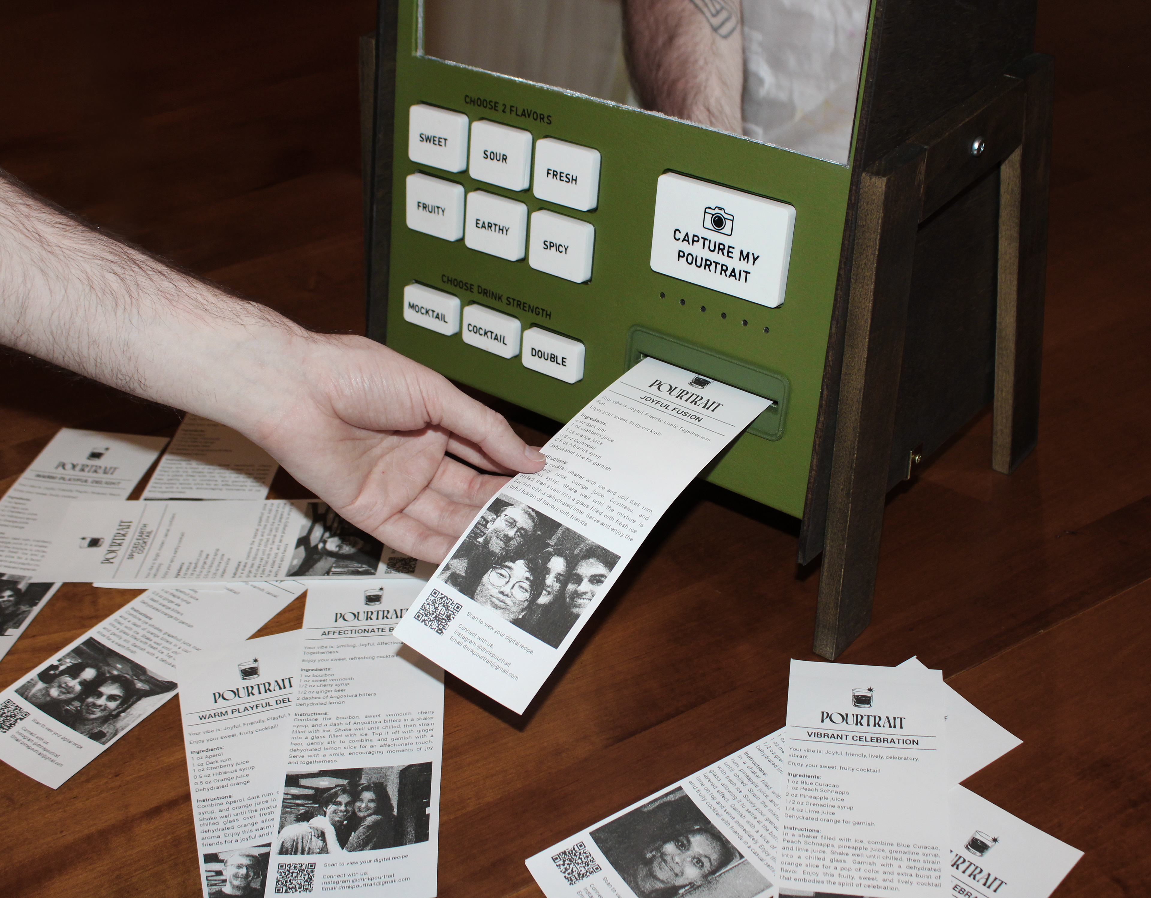 Pourtrait is a novel bar experience that transforms indecision into a playful moment of surprise. Think of it like a photobooth — but instead of just a picture, guests walk away with a custom cocktail or mocktail recipe tailored to their taste. Simply step up, select your flavor and strength preferences, snap a photo, and receive a printed keepsake with your personalized drink.